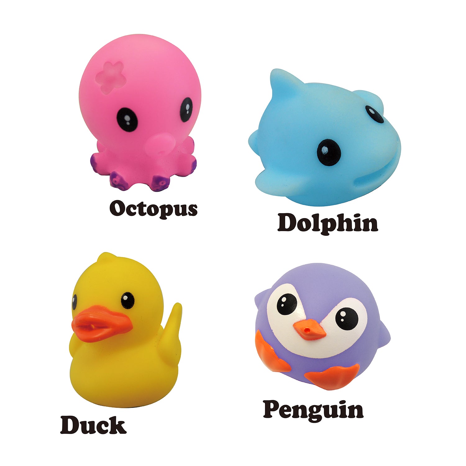 SUPER CUTE ANIMALS BEACH TOYS: water toy gun including ducky, little dolphin, baby octopus, penguin junior and four other colors each styles. It`s cute design and bright colors can take them into a fantastic world of animals.