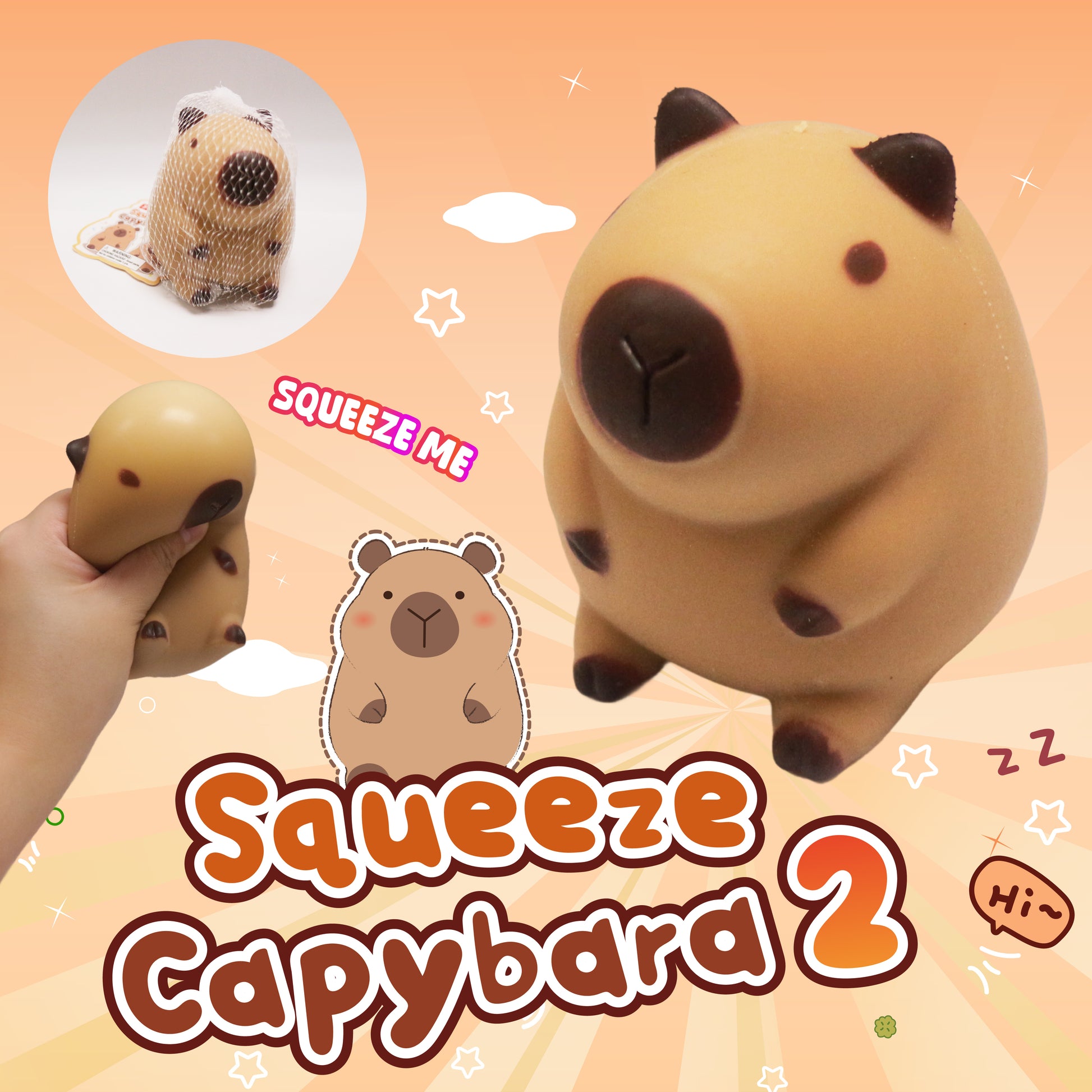 Discover the joy of squishing with the Squeeze Capybara! This lovable toy, resembling an adorable capybara, is your perfect companion for stress relief and playful relaxation. Its soft and squeezable texture provides a satisfying tactile experience that helps melt away tension and promote a sense of calm. Whether you're in need of a moment of tranquility at work or a fun way to unwind at home, the Squeeze Capybara is here for you. Embrace the cuteness and comfort of this squishy capybara toy as you squeeze your way to a more relaxed and cheerful state of mind. Let the Squeeze Capybara be your adorable stress-relief buddy, always ready to bring a smile to your face with every gentle squeeze.